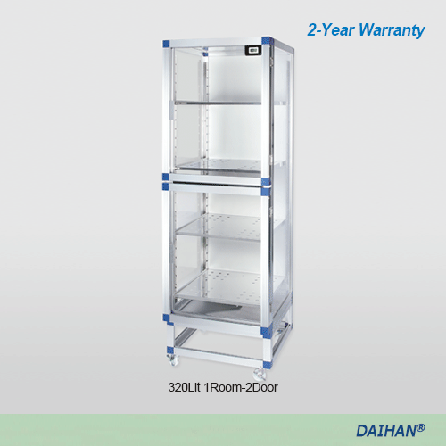 DAIHAN® 164·207·320·640·604Lit Gas Exchangeable PMMA Desiccator, 1 & 4 Room With Digital Thermo-Hygrometer·Gas Valve·SUS Shelf, [Korean-made], 가스치환 데시케이터