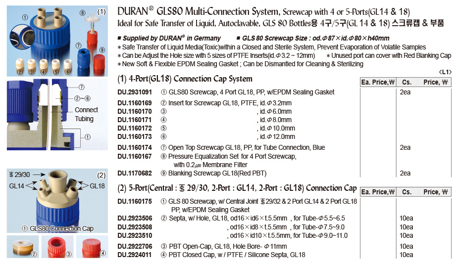 GLS 80 Screwcap, w/ Central Joint 29/32 & 4 Port GL18
