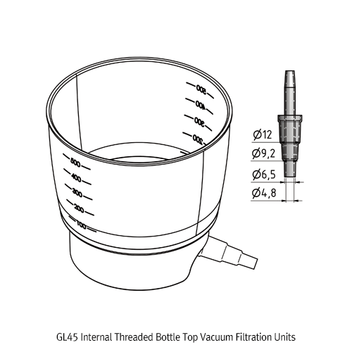 DURAN® 500㎖ PS Sterile Bottle Top Vacu-Filtration Funnel, with GL45 Internal Threaded, Pore Size 0.1~0.45㎛ PES FilterGood for All of GL45 Threaded Bottle and DURAN® Tilt GL56 Bottle, 멸균 진공 여과 장치/바틀탑 필터